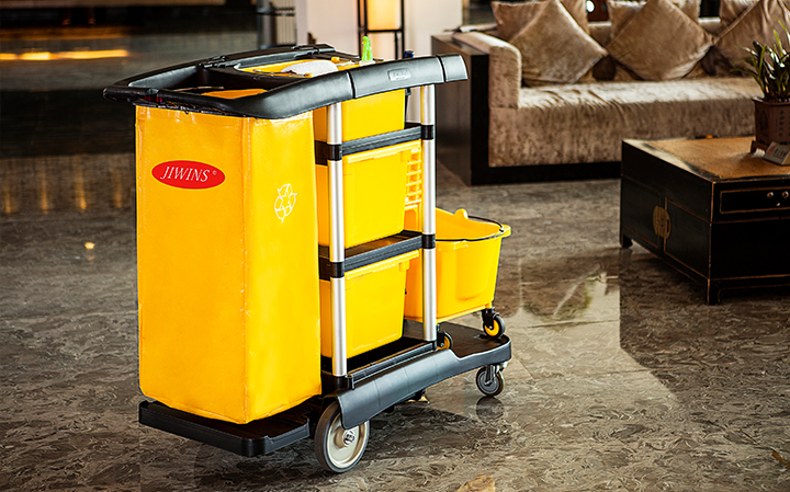 具有高度美感,適合在大堂展示。 創新的工具管理和儲藏模式。 設計新穎,效能卓越,外形美觀,用于清理和收集輕便的垃圾。 易于操作和方便觀察清潔車上的上部和四周情況。